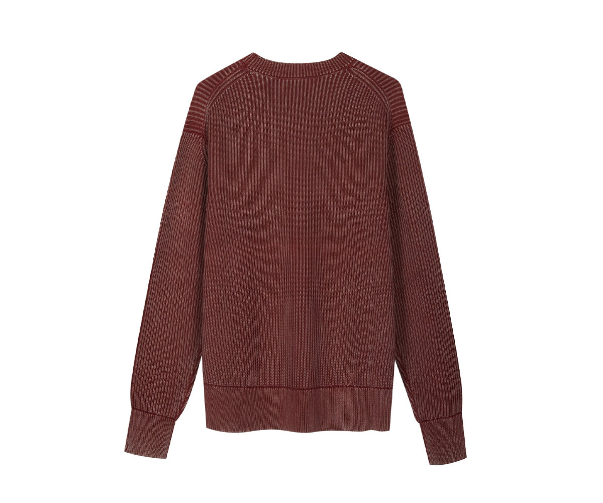 Ogni capo viene sottoposto a un trattamento che crea sfumature di colore uniche, donando alla maglia un autentico effetto vintage. Realizzato in maglia a punto inglese, questo girocollo in 100% cotone unisce texture corposa e morbidezza naturale.