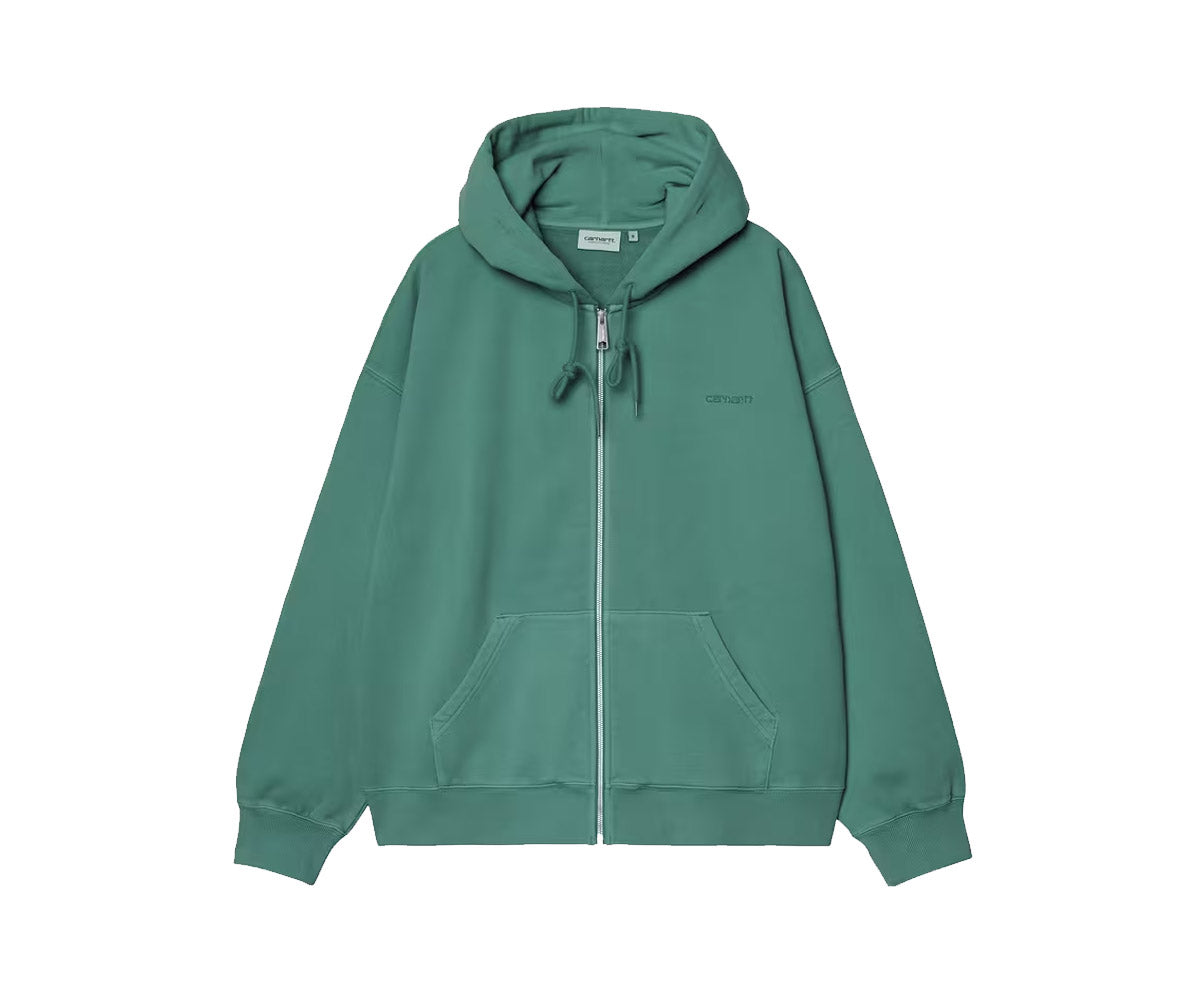 La Hooded Benton Sweat Jacket è caratterizzata da vestibilità ampia e squadrata e realizzata in pesante jersey di cotone non spazzolato, tinto in capo per maggior morbidezza e una colorazione più articolata.