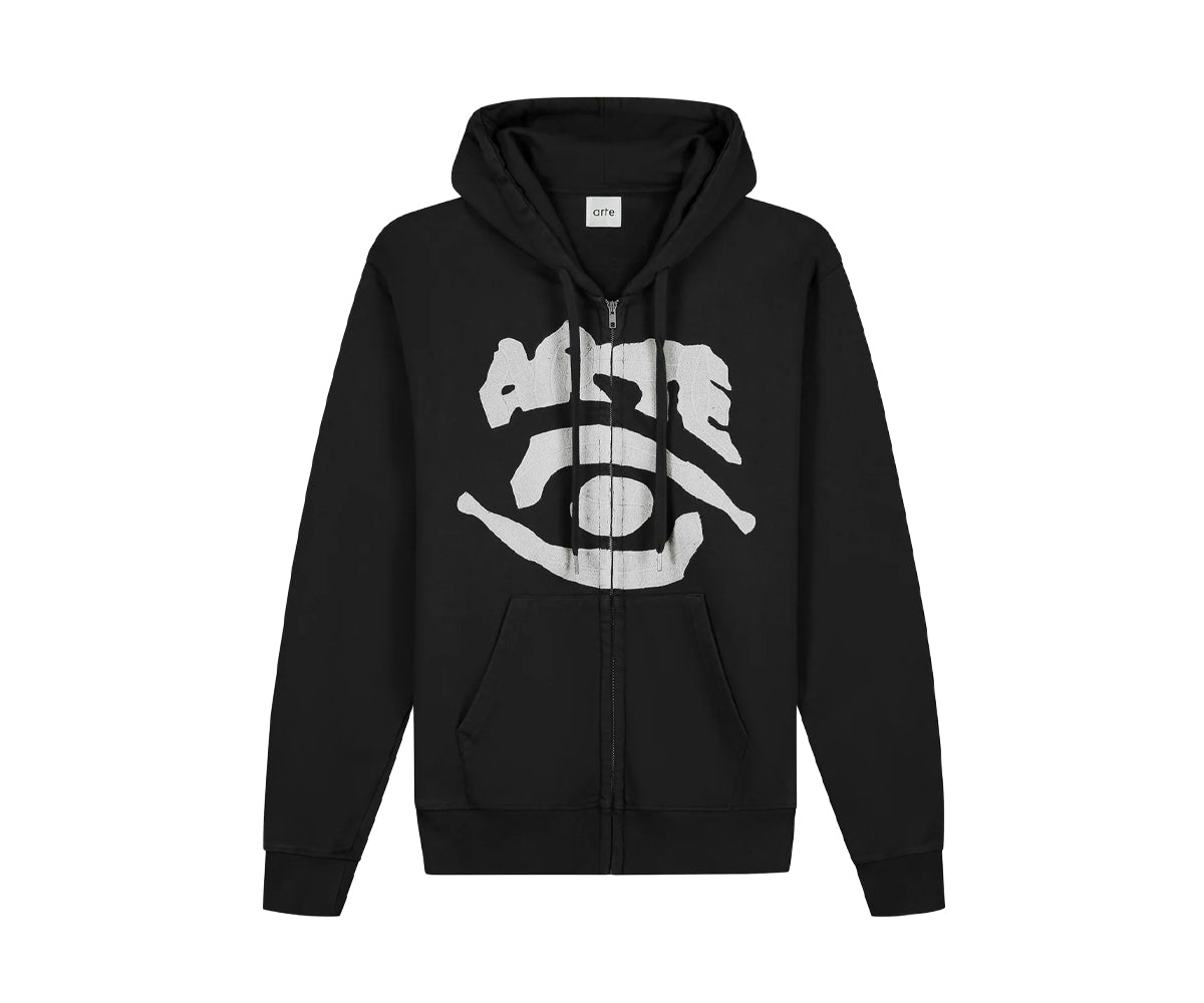 Realizzata in pregiato cotone pesante, la felpa con cappuccio e zip presenta la versione di questa stagione del logo Arte ricamato in bianco sul petto. La felpa nera ha una vestibilità comoda ed è rifinita con una cerniera a tutta lunghezza, coulisse e due tasche laterali.