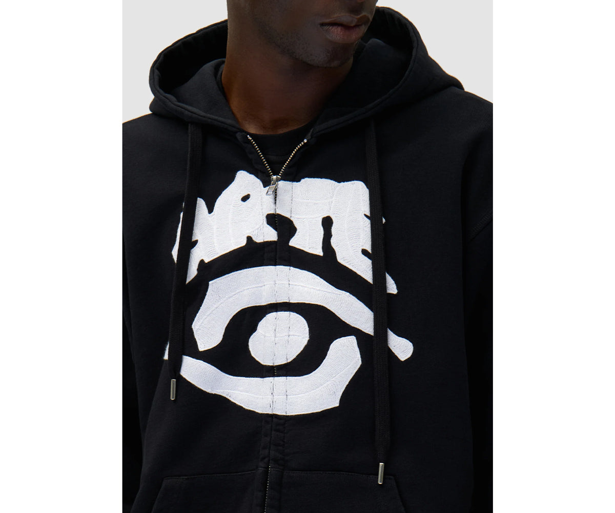Eye Print Zip Hoodie - Black