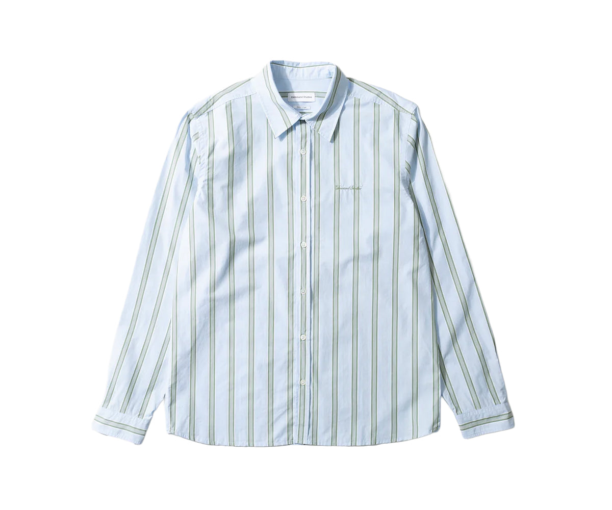 Camicia in popeline di cotone con motivo a righe azzurre e verdi. Collo button-down e maniche lunghe con polsini abbottonati. Taschino sul petto. Chiusura frontale con bottoni. Logo del marchio ricamato sul petto. Realizzata in 100% cotone. Prodotto in Portogallo.
