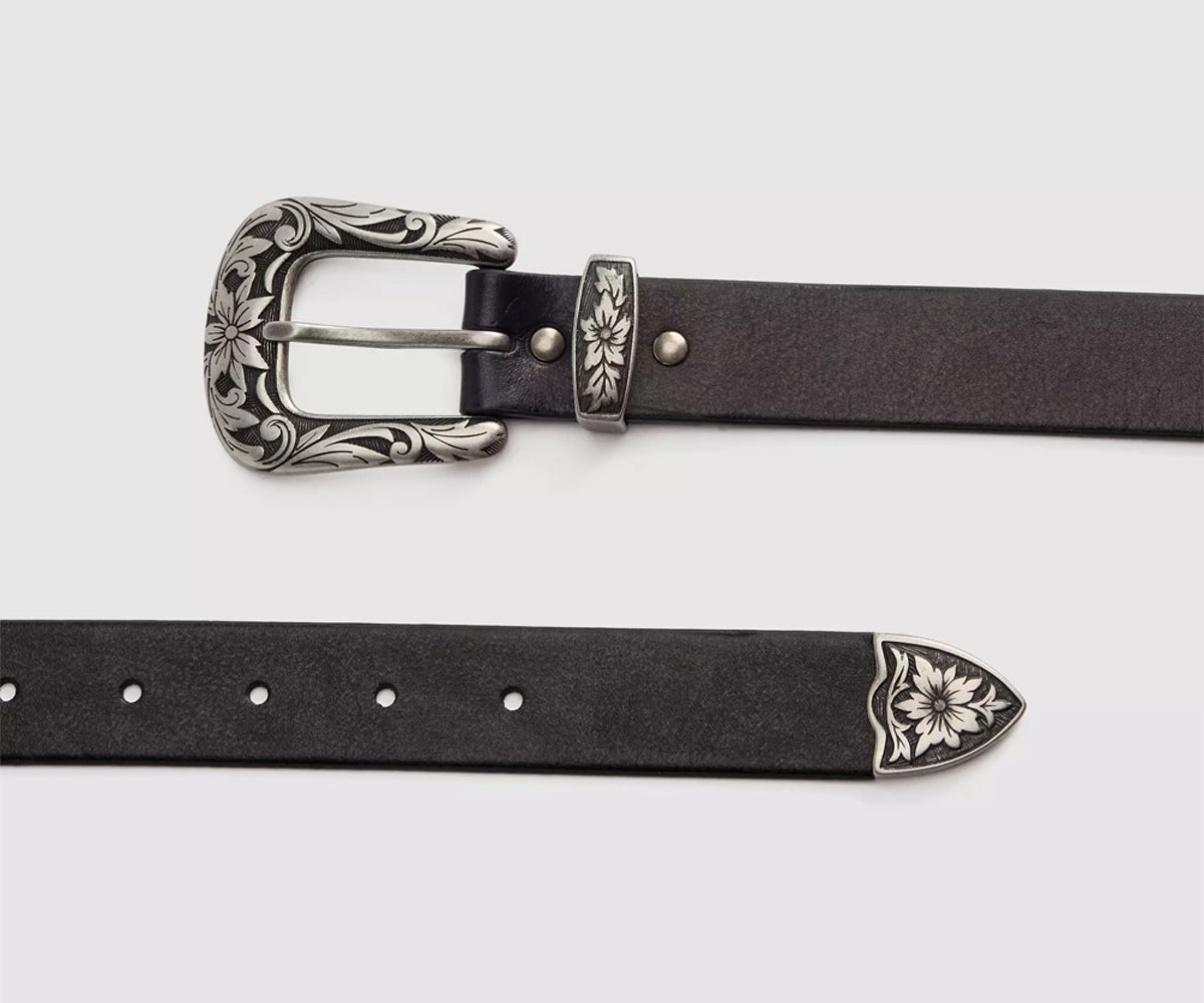 Una classica cintura western in 3 pezzi. Questa cintura Go West è realizzata in vera pelle per durare nel tempo e presenta un design e una fibbia di ispirazione western.