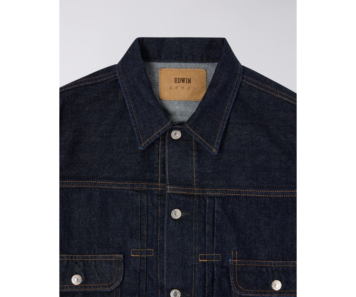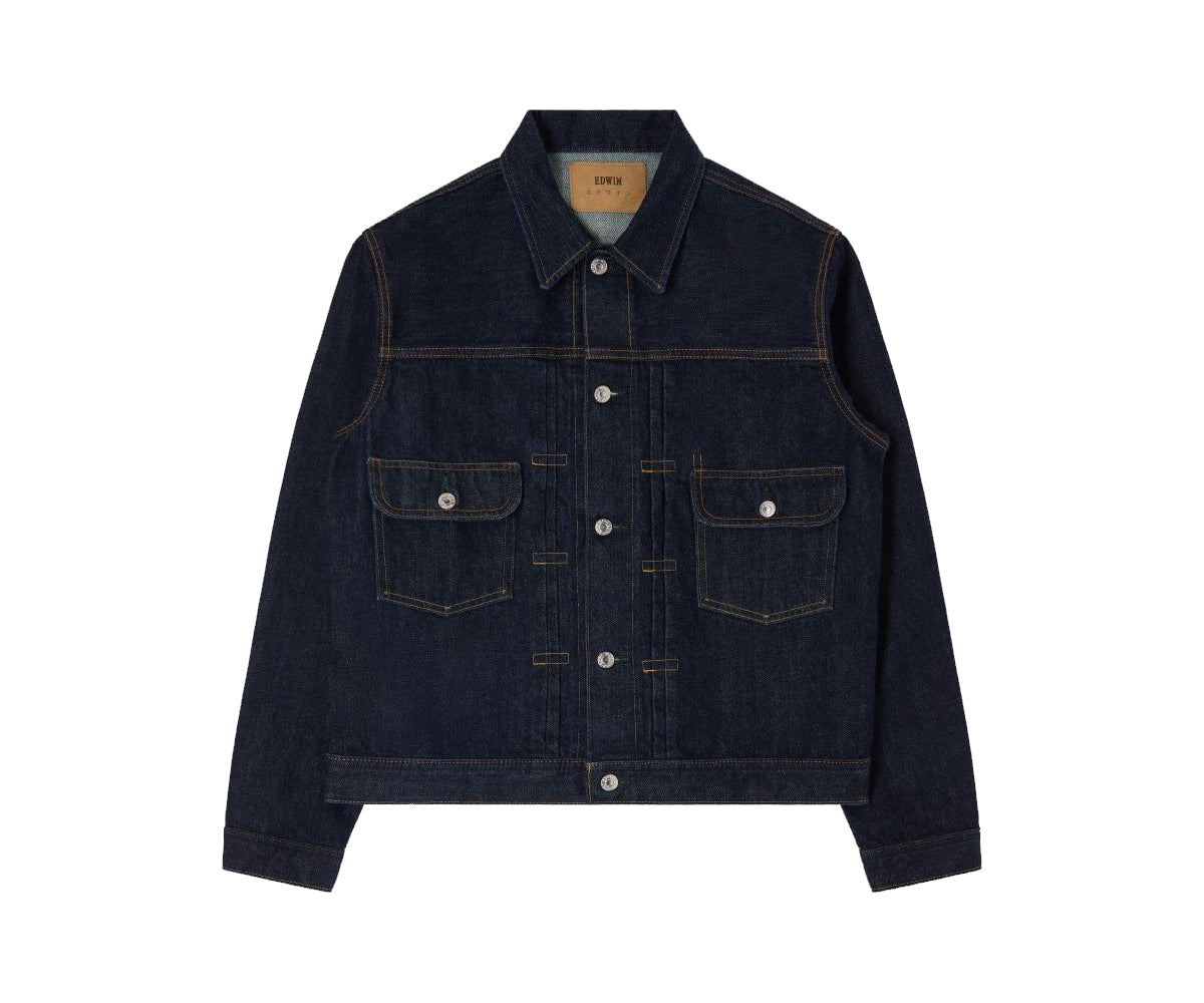 La collezione "Made in Japan" offre un prodotto unico, ineguagliabile in termini di qualità, prezzo e provenienza "Made in Japan". La giacca in denim EDWIN, in linea con gli aspetti tradizionali della collezione denim giapponese di alta gamma, è realizzata in tessuto denim Kurabo Recycle Red Selvage 100% cotone.