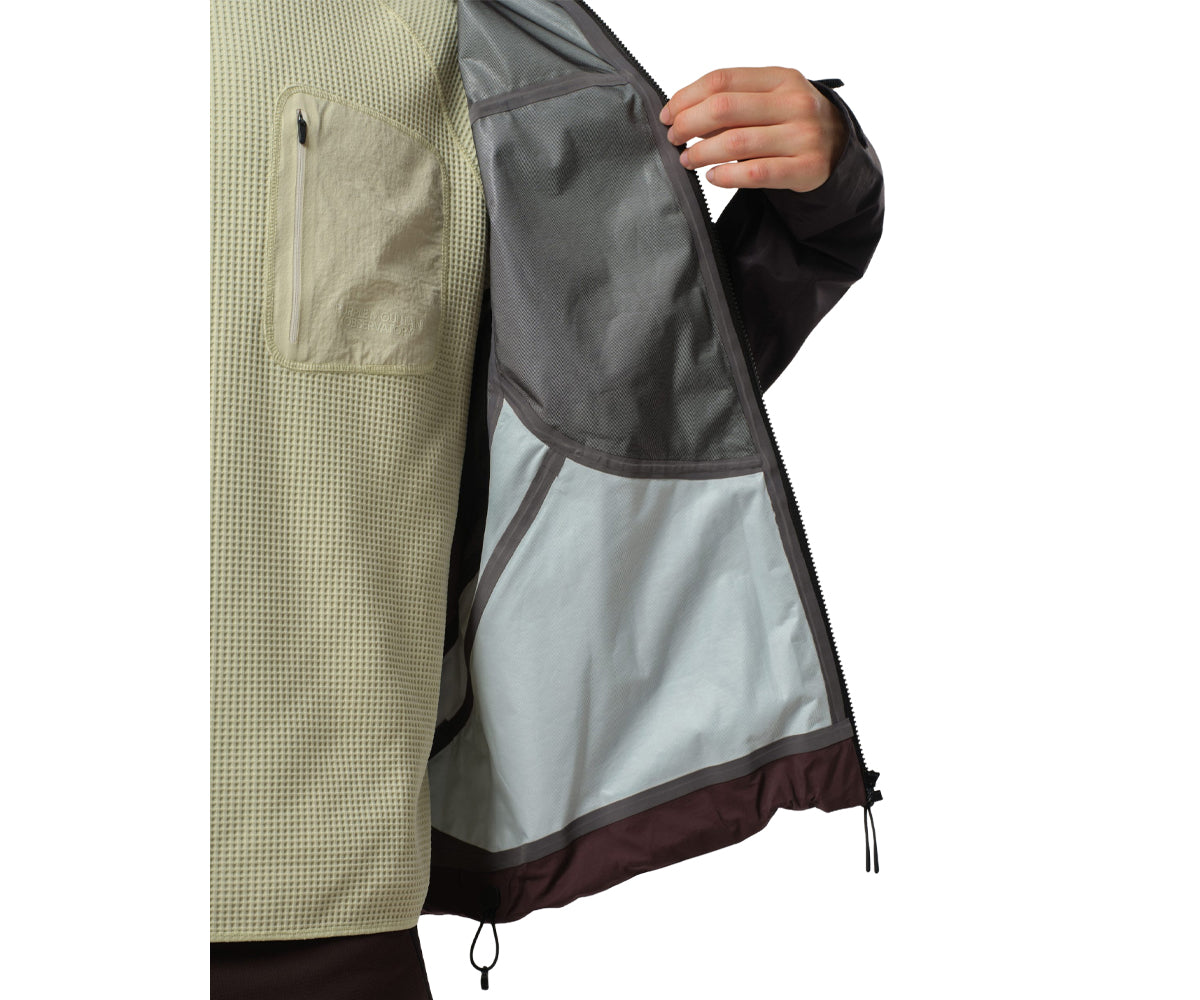 I dettagli funzionali includono cuciture termosaldate per una maggiore resistenza e impermeabilità, e cerniere YKK® Aquaguard® sulle tasche sul petto e sul centro davanti, con tiretti PMO brandizzati. Una copertura in neoprene per la cerniera sul collo e sul cappuccio, insieme a una visiera strutturata, garantiscono una maggiore protezione dalle intemperie. Ulteriori caratteristiche includono il nuovo sistema di regolazione push-toggle sull'orlo, i polsini regolabili SunGrip® e un passante per appendere il capo sul retro del collo.