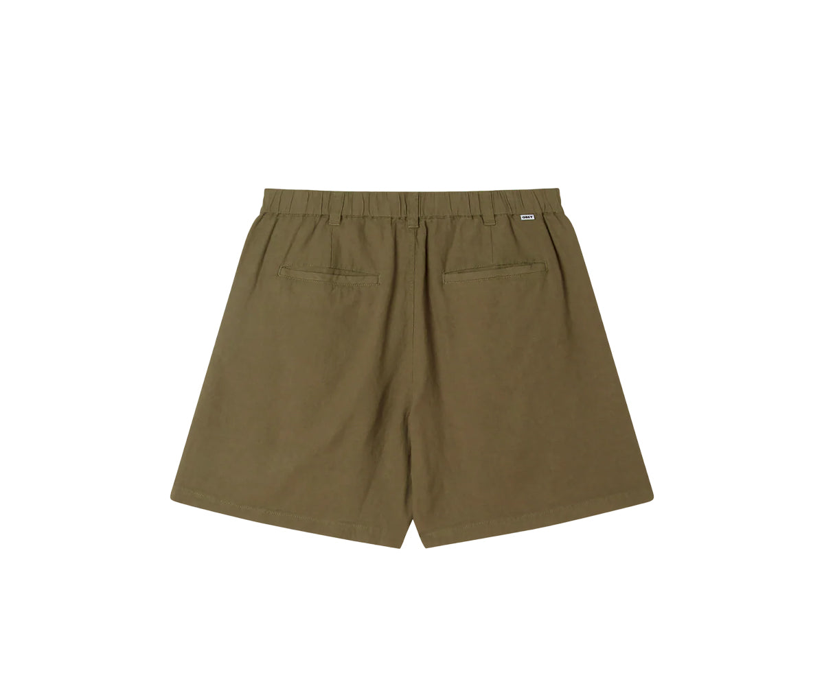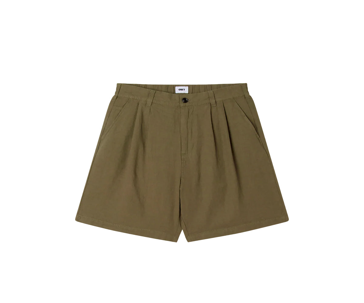 Foster Pleated Linen Short - Smokey Olive