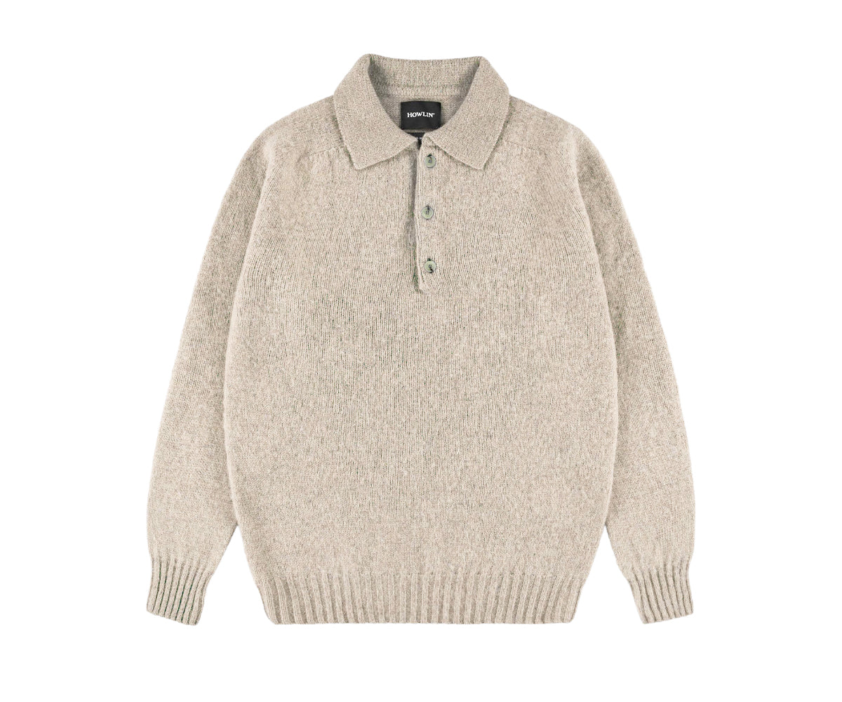 Ghost Pressure è l'interpretazione raffinata di Howlin del classico maglione polo, realizzato con precisione e cura in Scozia. Il modello presenta un colletto morbido e una chiusura a quattro bottoni, che gli conferiscono un look raffinato ma rilassato, perfetto per tutte le stagioni e in ogni situazione. I bordi a coste su polsini e orlo garantiscono una vestibilità comoda e strutturata, pur mantenendo la massima libertà di movimento.