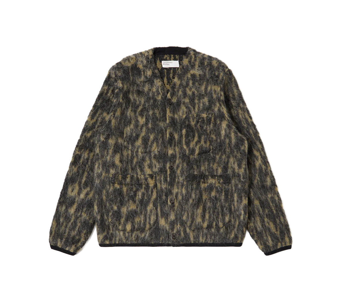 Un classico UW, il cardigan facile da indossare ha una parte anteriore con bottoni auto-fissati, tre tasche esterne applicate e una quarta interna. Con polsini e orlo in costina di cotone.