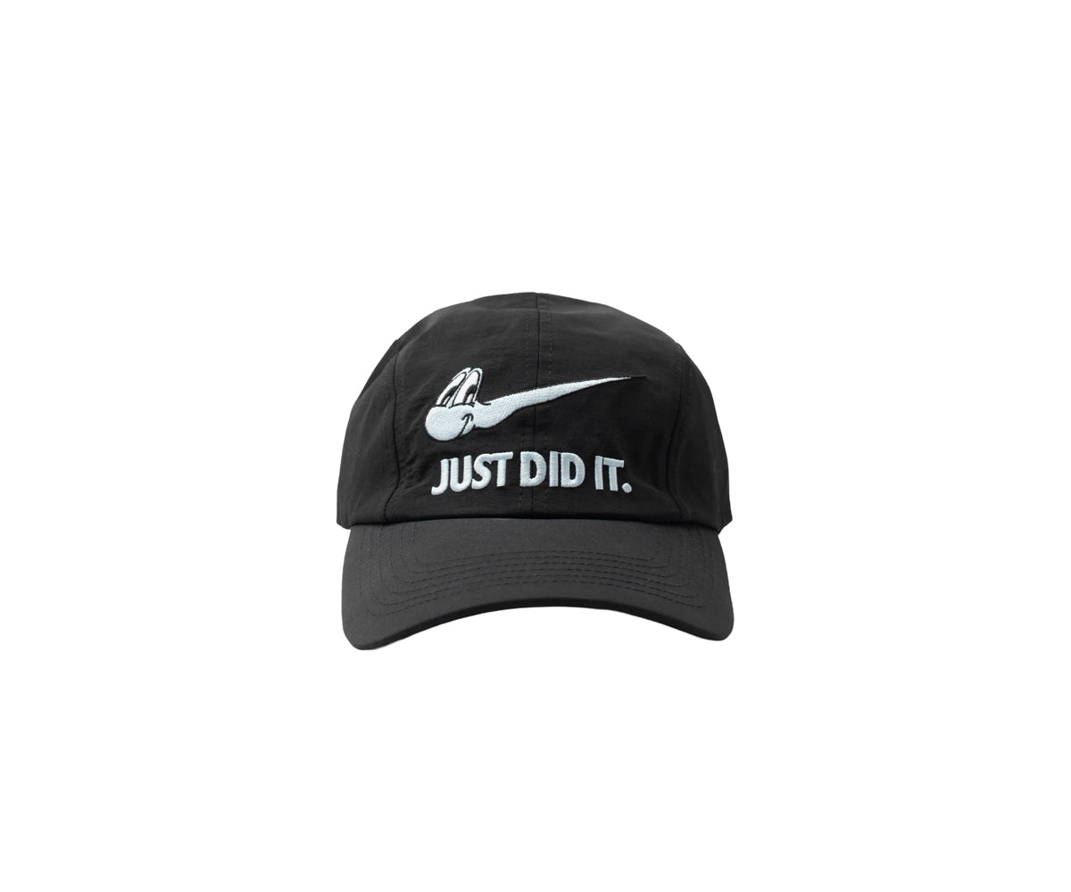 Il cappellino Carne Bollente And I'll Do It Again in nero è un cappellino a 4 pannelli in nylon con ricamo "I Just Did It" sul davanti e cordino regolabile sul retro.