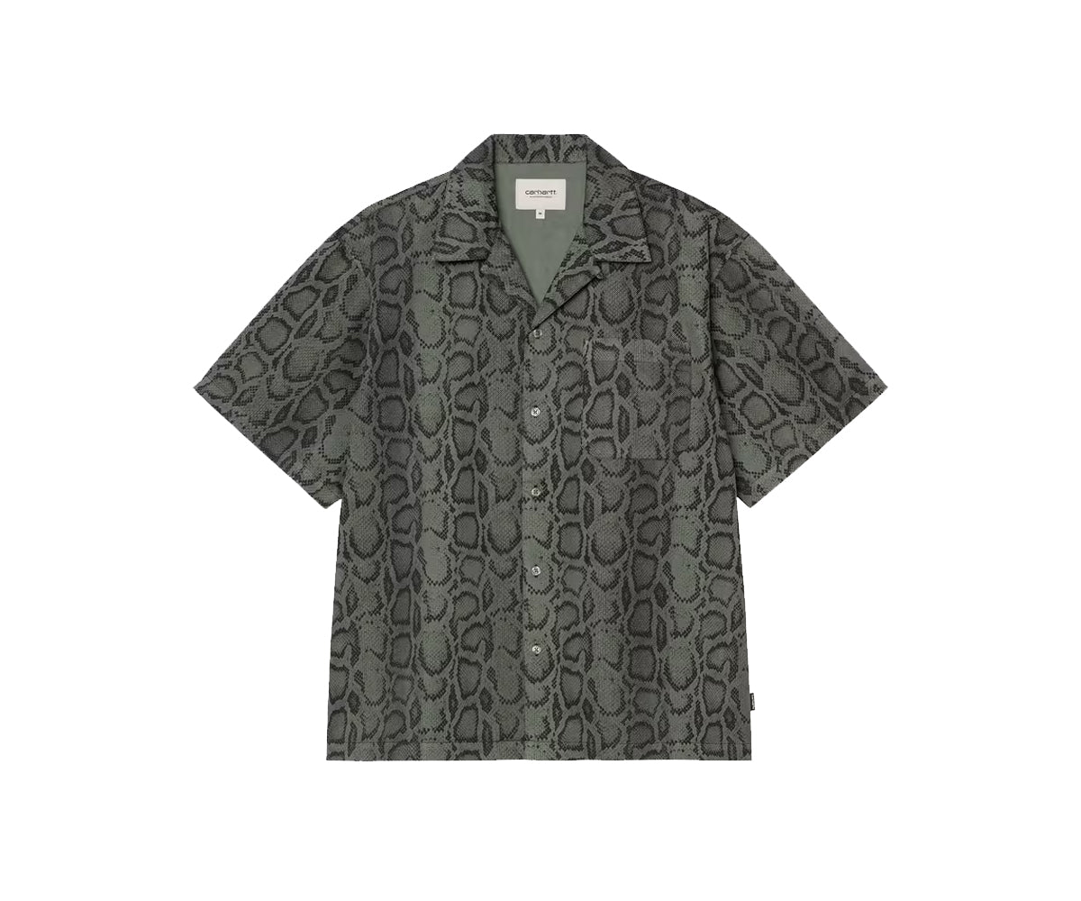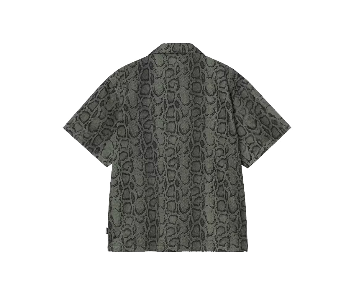 La S/S Snake Camo Shirt è caratterizzata da vestibilità ampia e realizzata in twill di cotone di medio peso con stampa mimetica allover “pelle di serpente”. La camicia presenta collo bowling ed è caratterizzata da una tasca sul petto. Rifinisce il modello un’etichetta bandierina in tessuto.