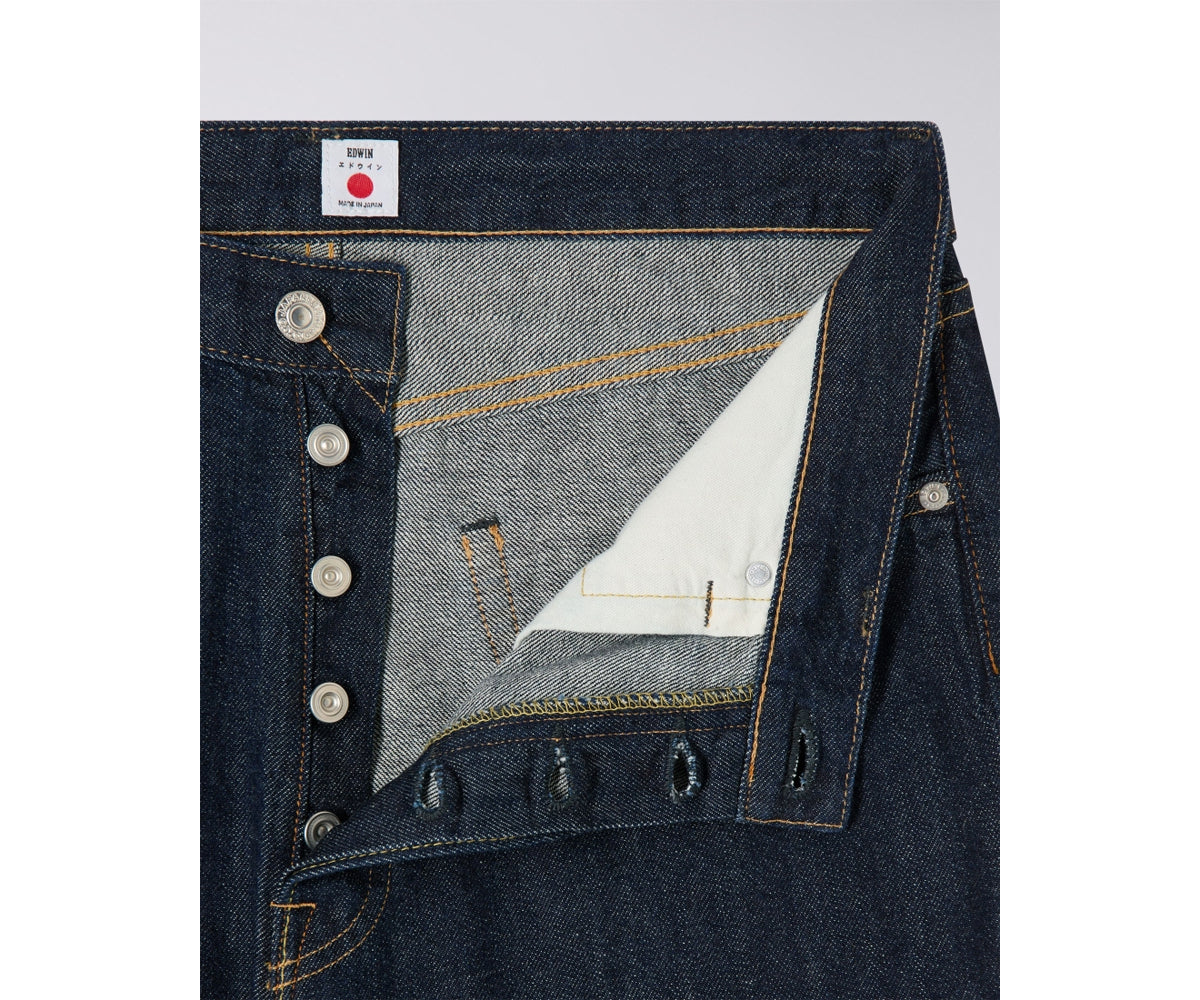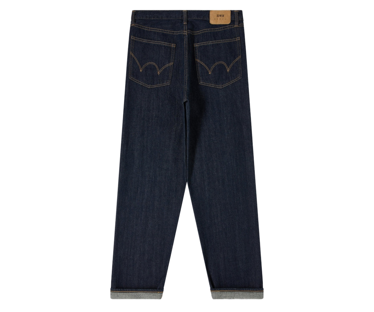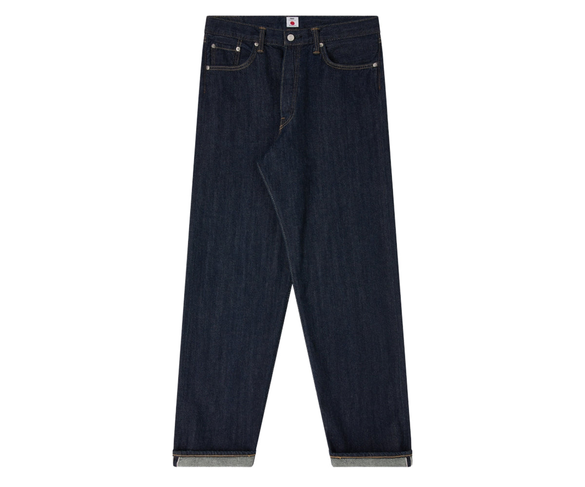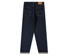 I jeans loose sono prodotti in Giappone in denim Kaihara Indigo Lightweight Red Selvage da 10,5 oz, 100% cotone. Caratterizzati da vestibilità ampia, vita media e un classico design a cinque tasche con patta con bottoni, offrono una silhouette comoda ma strutturata. La finitura Blue Unwashed conferisce un look pulito e grezzo che acquisirà carattere nel tempo.