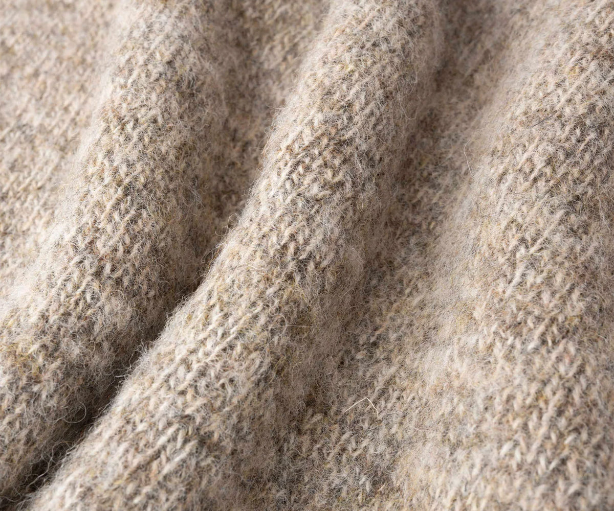 Prodotto artigianalmente in Scozia, è realizzato in pura lana al 100% proveniente dalle resistenti pecore Shetland, un'antica razza rinomata per la sua capacità di adattarsi al rigido clima scozzese. Ogni pecora produce una quantità limitata di lana, rendendo questo filato molto ricercato per la sua eccezionale qualità, il suo calore e il suo carattere.