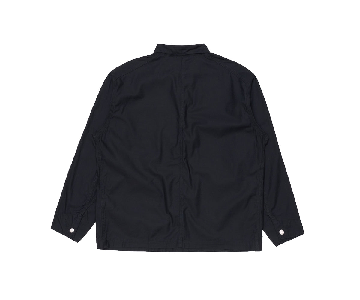 Una rivisitazione moderna di un classico dell'abbigliamento da lavoro robusto, realizzata in resistente raso militare da 214 g/m², interamente in cotone 100%. Ha una vestibilità decisamente oversize per una facile stratificazione e il massimo comfort. La silhouette a tre tasche, in stile tuta, è impreziosita da vistosi bottoni piatti in metallo argentato lucido, che ne rafforzano le origini funzionali con una finitura raffinata.