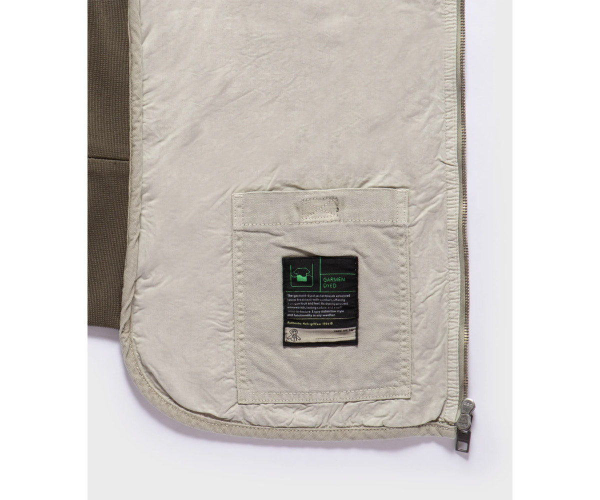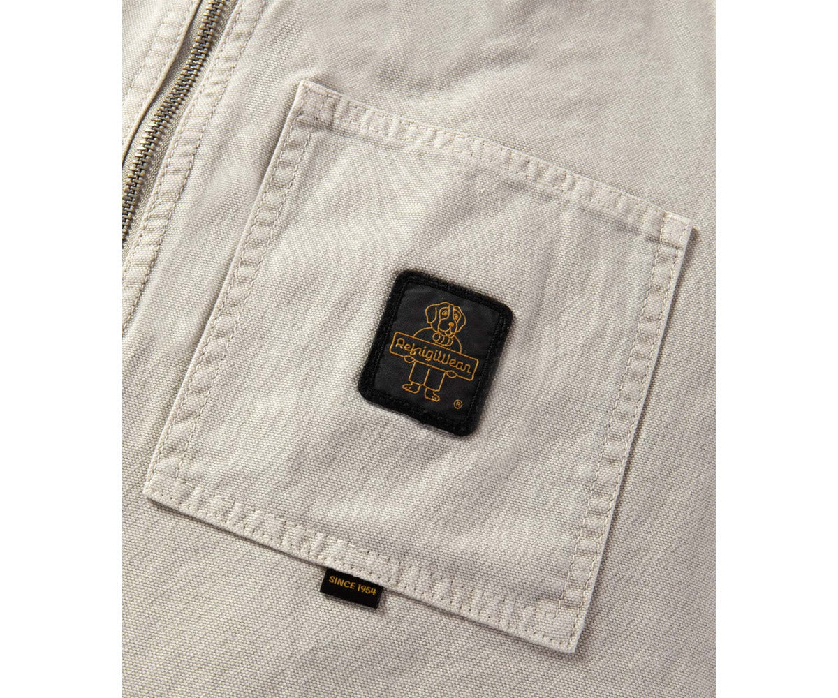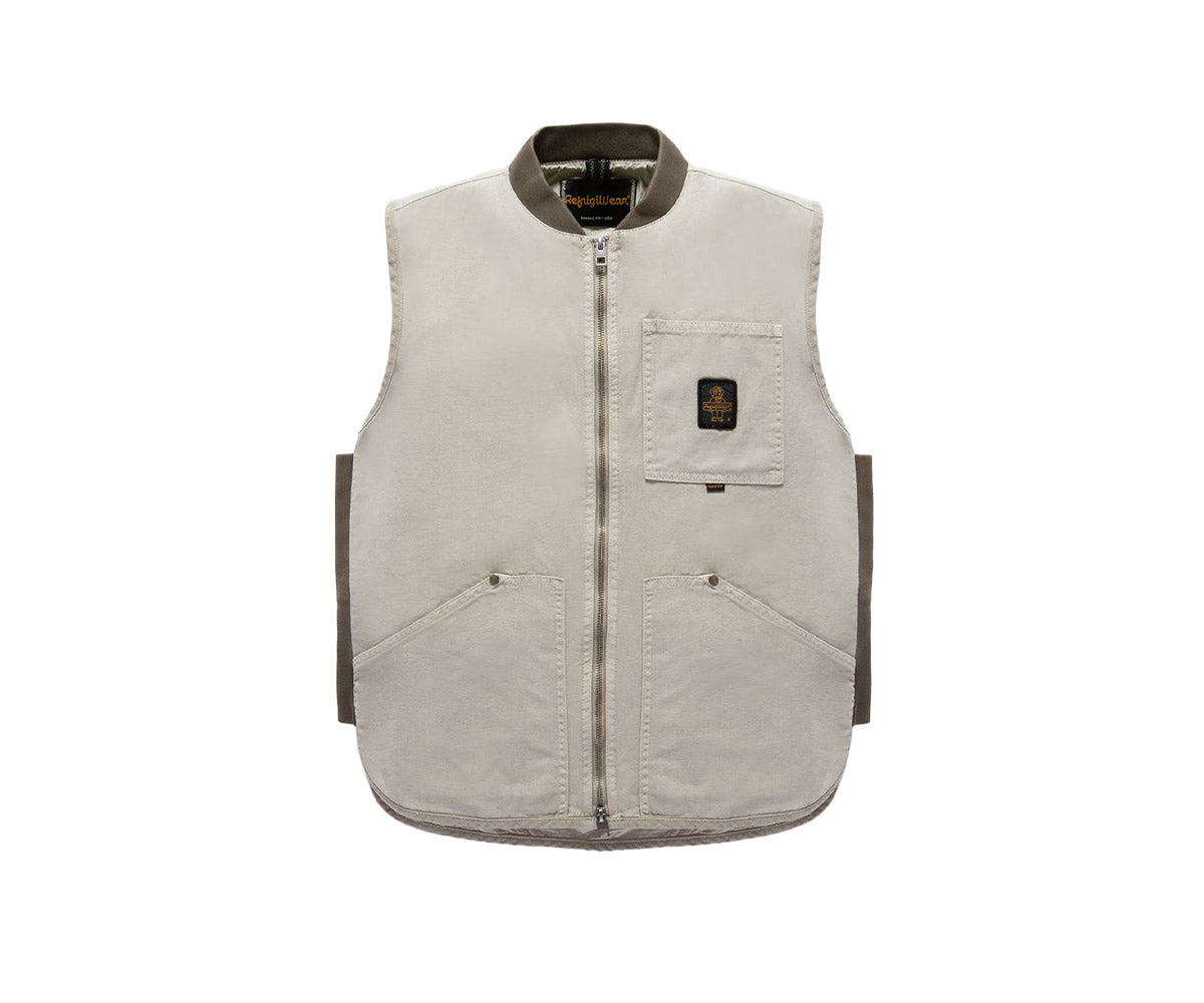 Una nuova versione dell'iconico smanicato, ispirata a un capo storico d’archivio e reinterpretata in un’inedita edizione in canvas 100% cotone con trama Oxford. Il guscio esterno unisce robustezza e traspirabilità, offrendo un tocco corposo ma estremamente piacevole da indossare. Il design mantiene i tratti distintivi di RefrigiWear®, tra cui la sagoma arrotondata sul fondo, per un fit versatile, i fianchetti e il colletto bomber in costina stretch, per un comfort superiore e una vestibilità perfetta, e il taschino sul petto con rivetti rinforzanti in acciaio, che esaltano il suo look autentico e funzionale. Foderato internamente per garantire il massimo comfort, è dotato di una taschina interna con chiusura in velcro, pensata per offrire una praticità extra. Un capo iconico, perfetto per chi cerca uno stile heritage e contemporaneo allo stesso tempo.